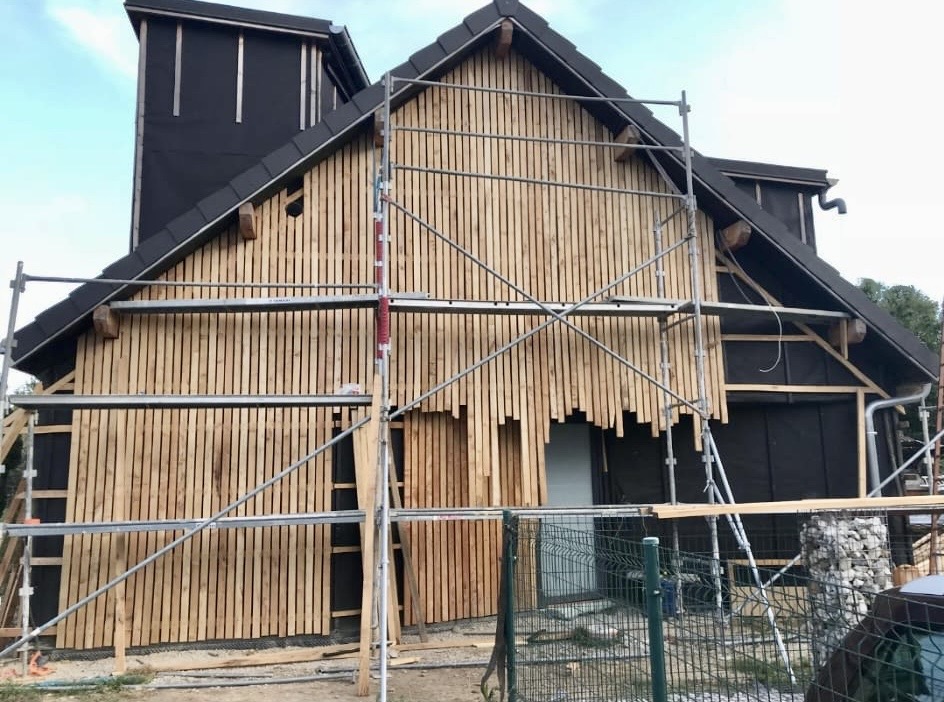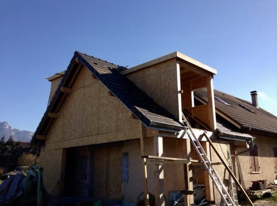 Agrandissement ossature bois, porte-fenêtres, isolation et toiture