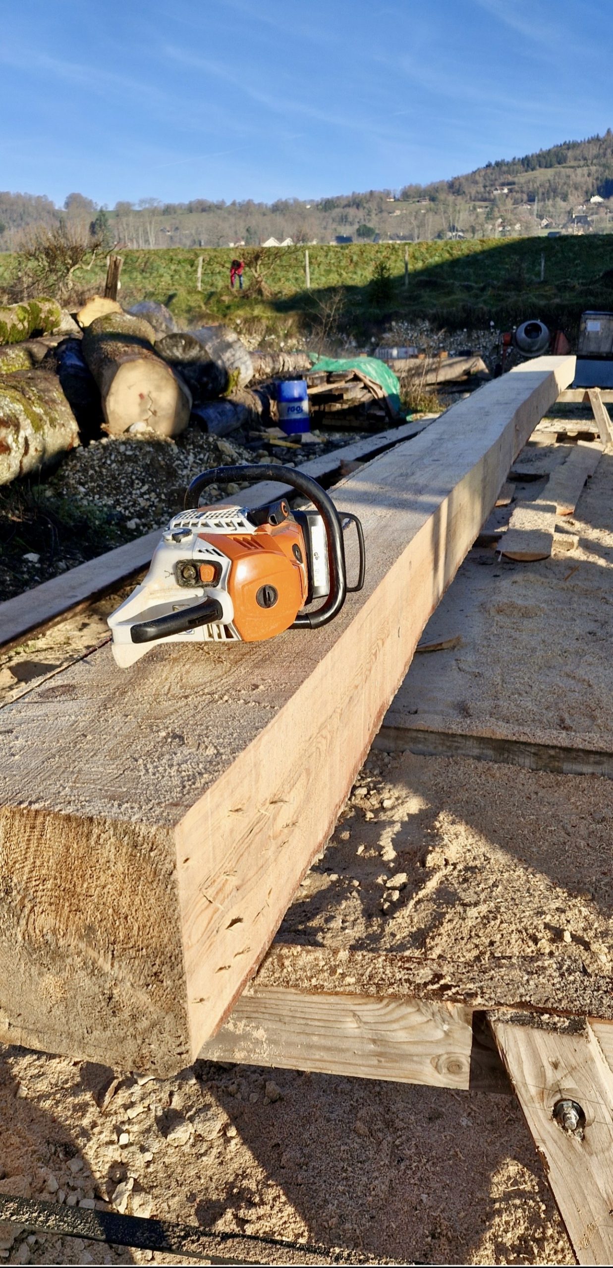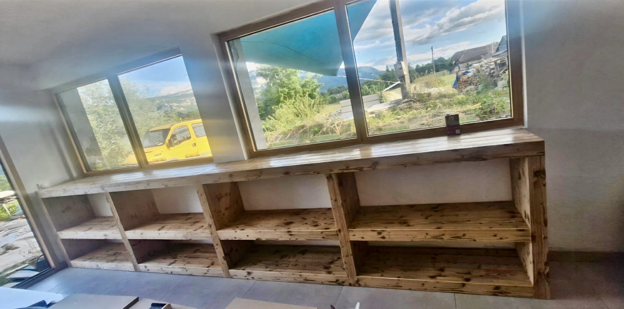 Intérieur du chalet, réalisation du solivage, isolation